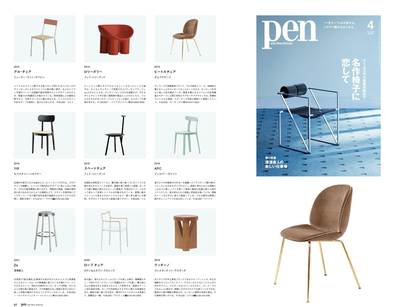 pen 2022 4月号でGUBI ビートルチェアをご紹介していただきました。