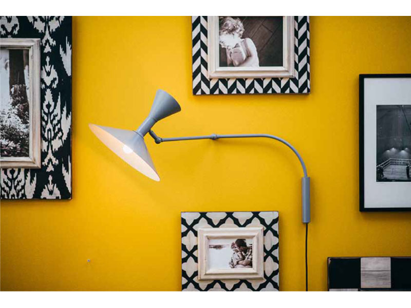 ル・コルビジュが名建築ユニテ・ダビタシオンのためにデザインしたランプと、アートフレームが互いを際立たせる。