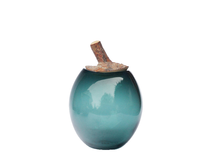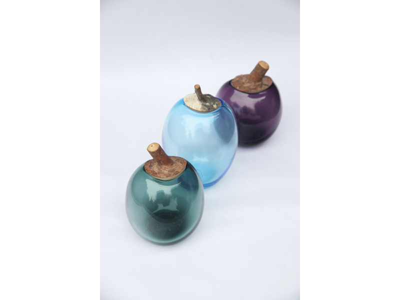 木のリッド部分は自然の枝を利用してデザインされており、果物を連想させるような丸みのあるフォームのガラスととても相性が良いです。