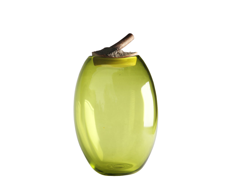 木のリッド部分は自然の枝を利用してデザインされており、果物を連想させるような丸みのあるフォームのガラスととても相性が良いです。