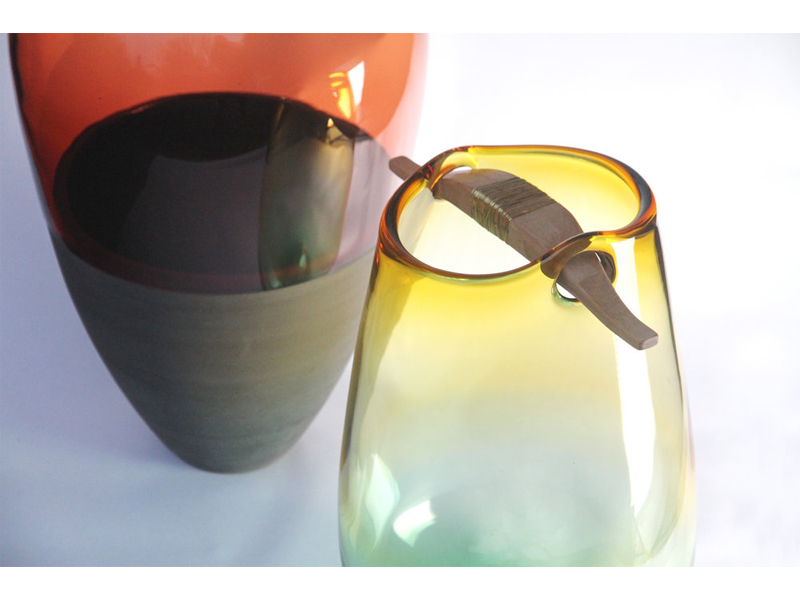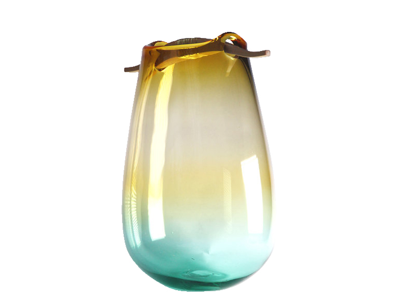 アンバーとエメラルドのグラデーションが美しい ヘイキ はイギリスにて 型に流し 込むことなくフリーハンドの吹きガラスで作られることで、ソフトなエッジに仕上 がります。