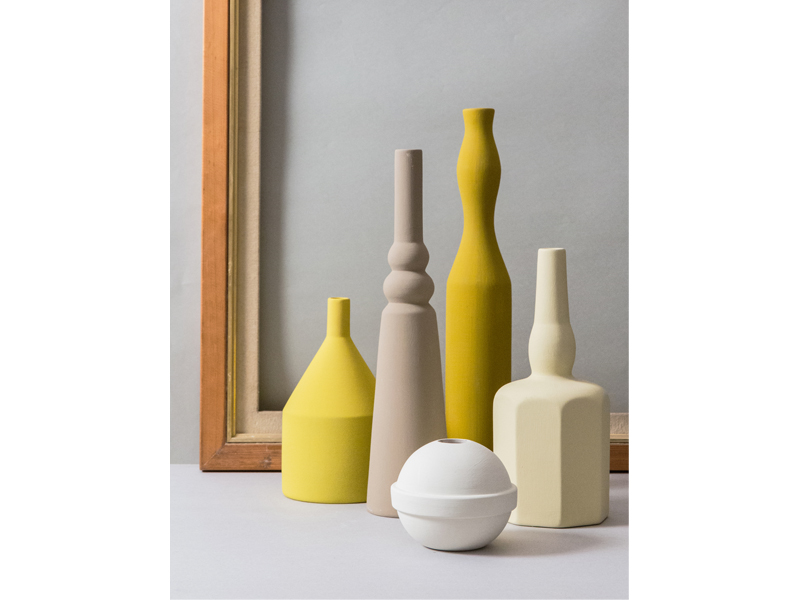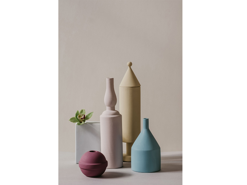 全てハンドペイントで製作されており、モランディの静止画を基に彼女がデザインし イタリアの職人の手によって作り出されています。