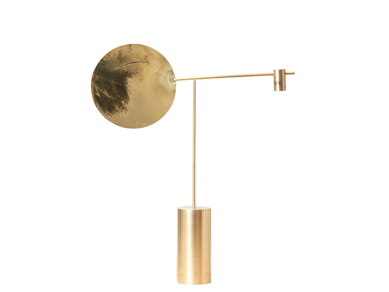 1800年代の科学機器を思い起こさせる Brass Table Mobile / ブラステーブルモビール は、風を測定する計測器からデザインされました。より抽象的にデザインされたこの作品は、人々が何のために作られたのかよく理解できない作品を作るというアイデアに基づいています。