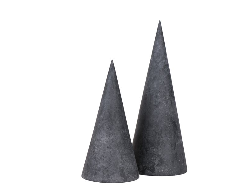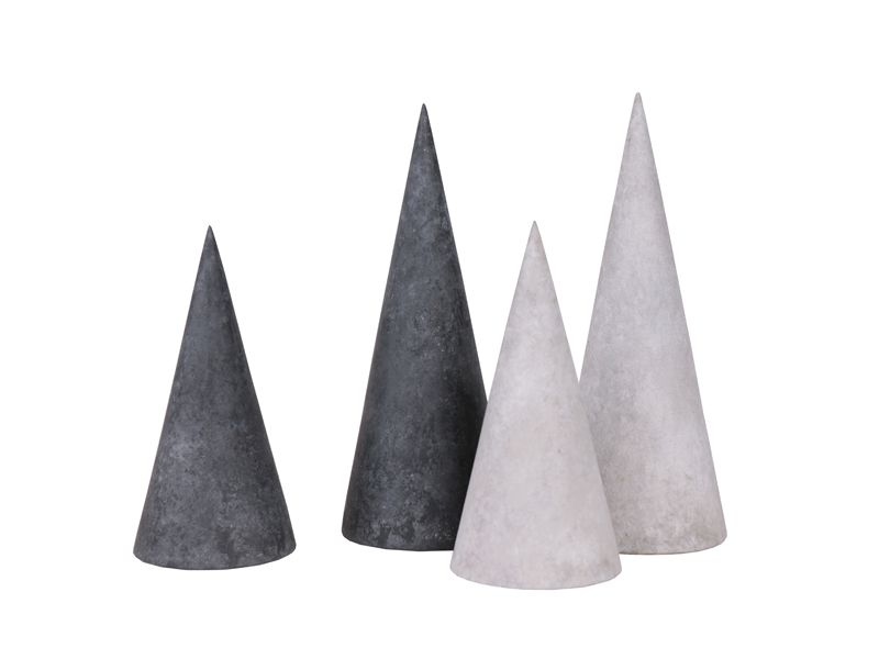 コンクリート塗装が施されたウッドコーンオブジェはモダンな風合いに仕上がっています。