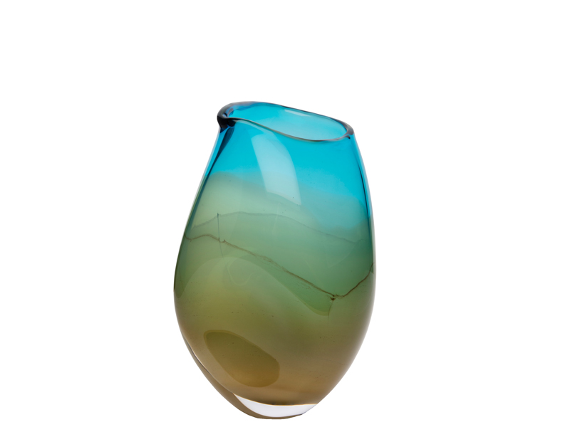色のレイヤーが絶妙なガラスベースは、ターコイズブルーが上品なデザイン。 彼女が作り出す自由な色調の変化は 私たちの気分や記憶を刺激し、奥行きが出て 圧倒的な深みを生み出します。