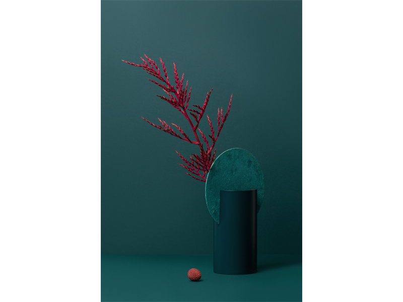 ベースとなるスチールにコッパーやブロス、パティー ナといった円型や長円などの形をはめ込んだようなデ ザインは、カラーと素材の組み合わせが絶妙です。