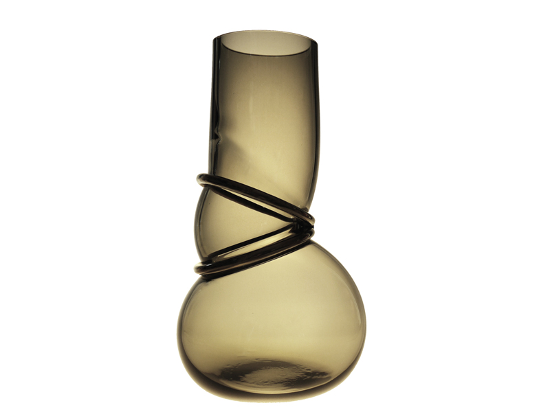 滑らかで繊細なガラスと粗く硬い金属のマテリアルとは対照的であり、またそれと同時に驚くほどうまく調和し、最終的にベースというよりもアートというべき作品となっているこのシリーズは、丸みのあるラインとメタルのコントラストが優雅。