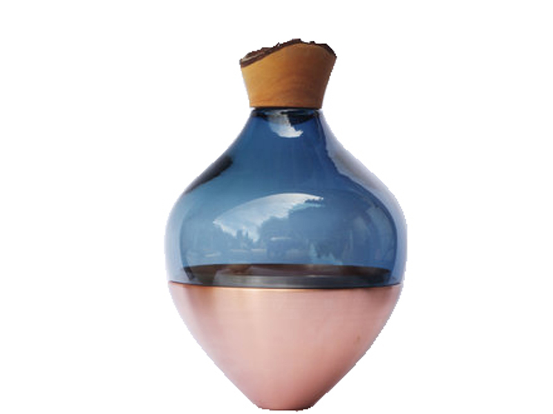 Stacking Vessels はブラウンスタジオガラスとコッパーを組み合わせており、それぞれ個々の容器としてお使いいただけます。