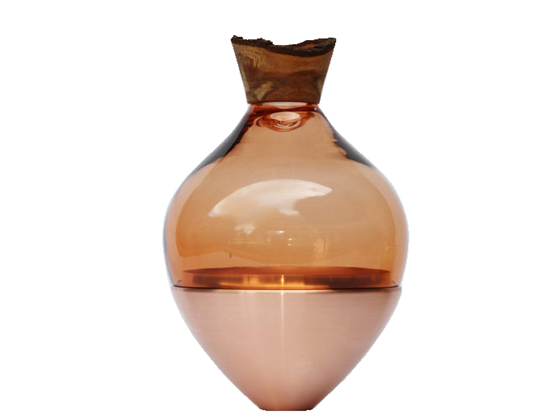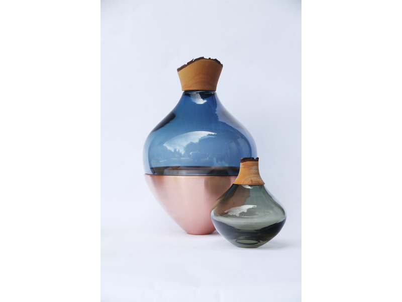 Stacking Vessels はブラウンスタジオガラスとコッパーを組み合わせており、それぞれ個々の容器としてお使いいただけます。