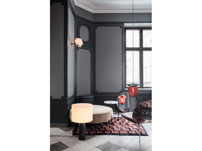 デンマークを拠点とするデザインデュオGamFratesi/ガムフラテーシ によってデザインされた TS コレクションに合わせ GUBI によりデザインされた TS プーフ 。