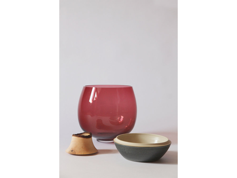 Butterfly Stacking Vessels はブラウンスタジオガラスと楽焼きしたセラミックを組み合わせており、それぞれ個々の容器としてお使いいただけます