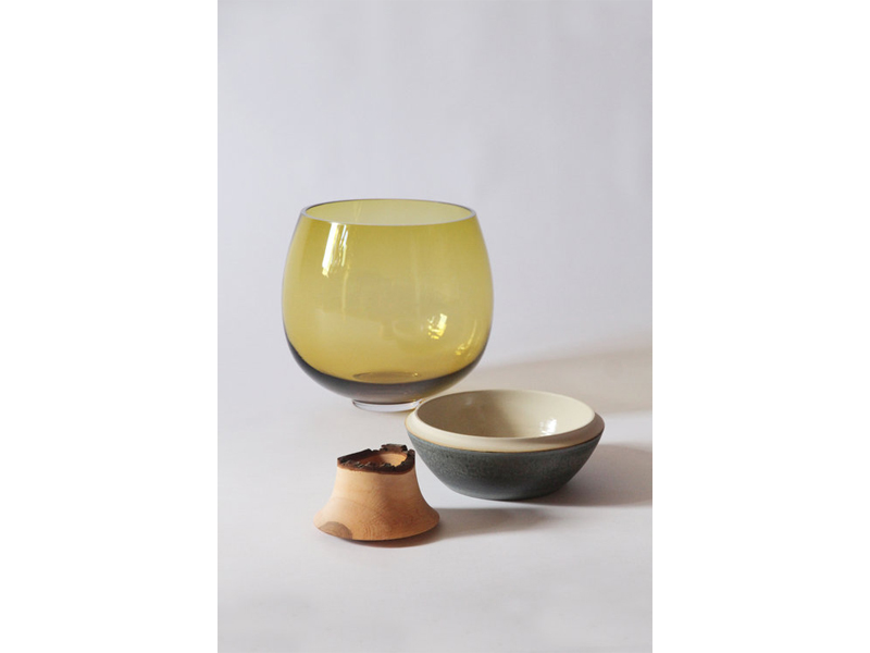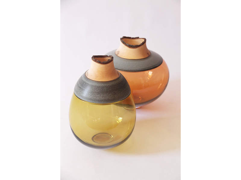 Butterfly Stacking Vessels はブラウンスタジオガラスと楽焼きしたセラミックを組み合わせており、それぞれ個々の容器としてお使いいただけます
