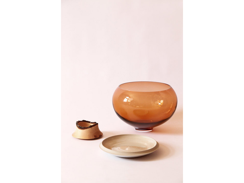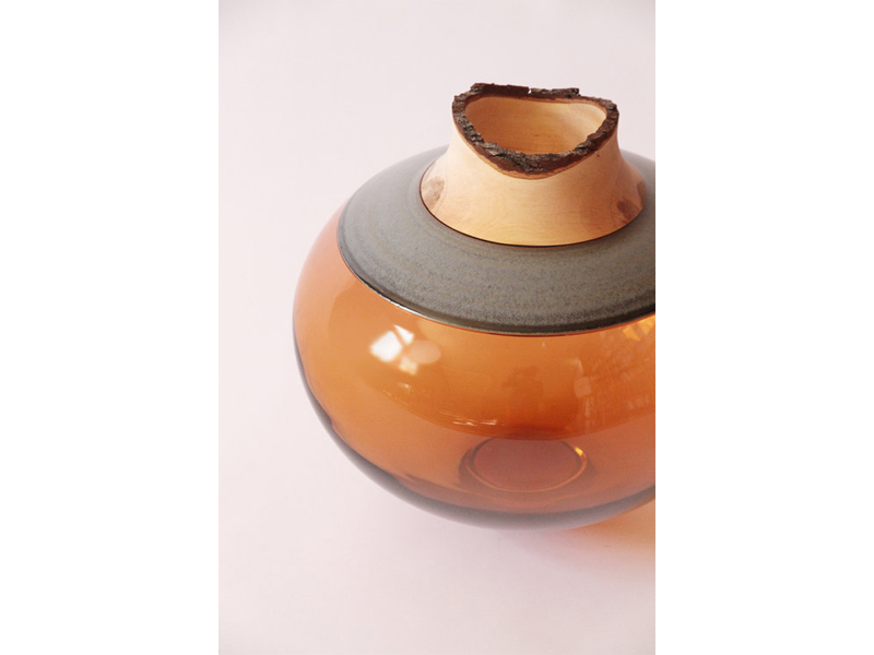 Butterfly Stacking Vessels はブラウンスタジオガラスと楽焼きしたセラミックを組み合わせており、それぞれ個々の容器としてお使いいただけます