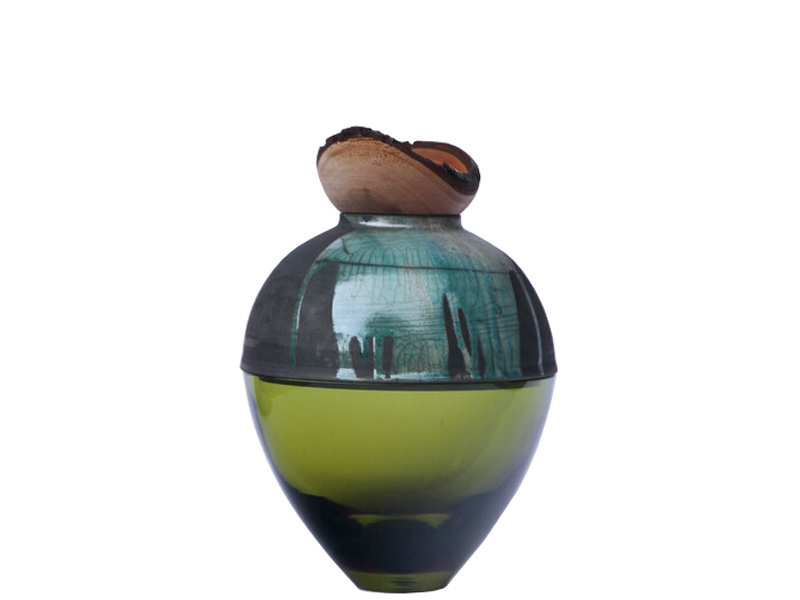 Butterfly Stacking Vessels はブラウンスタジオガラスと楽焼きしたセラミックを組み合わせており、それぞれ個々の容器としてお使いいただけます