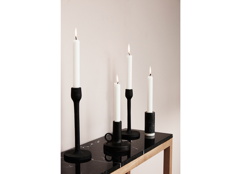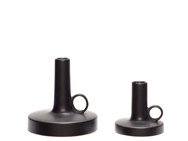 ハンドルのついた セラミックのキャンドルスティックは重厚感のあるデザイン。