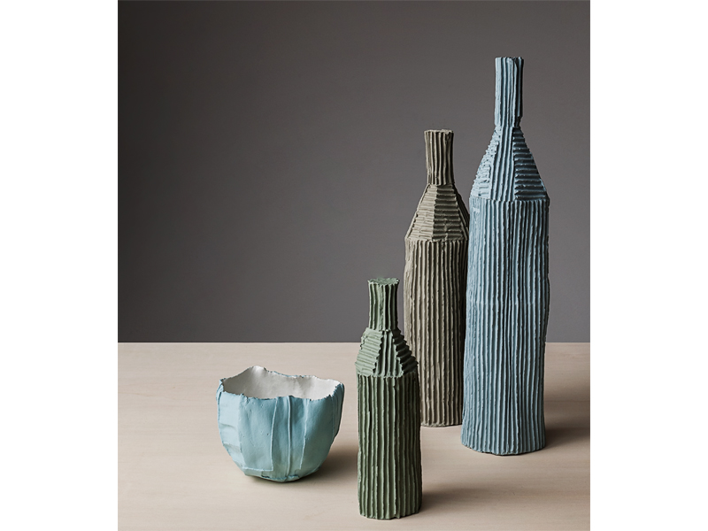 紙パルプ・天然繊維・粘土をブレンドさせた彼女独自のマテリアルにより作り出されるその世界観は、シンプルなデザインがより 自然の美しさを彷彿とさせ、彼女自身の感情を表現する手段として 製作活動を続けています。