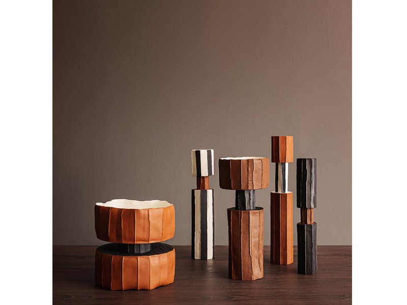 紙パルプ・天然繊維・粘土をブレンドさせた彼女独自のマテリアルにより作り出されるその世界観は、シンプルなデザインがより 自然の美しさを彷彿とさせ、彼女自身の感情を表現する手段として 製作活動を続けています。