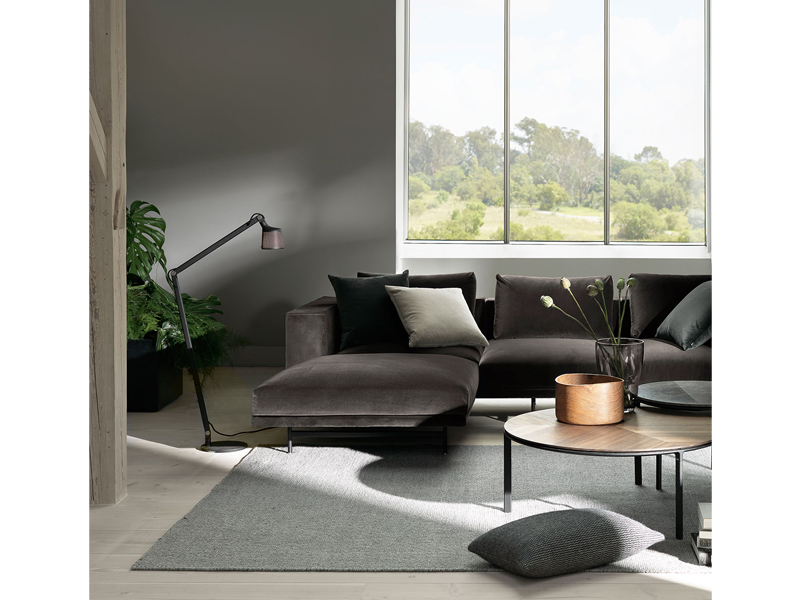 モダンなデザインとシックなカラーリングのテキスタイルが洗練されたデザインのロフトソファは、10パターンのモジュールからお選びいただけます。