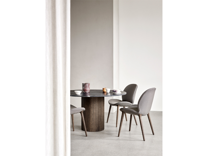 ライトオーク・ダークオークの脚に美しくユニークなマーブルの天板を組み合わせた モダンなラウンドのダイニングテーブル – キャビンラウンドテーブル