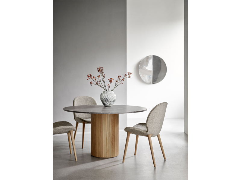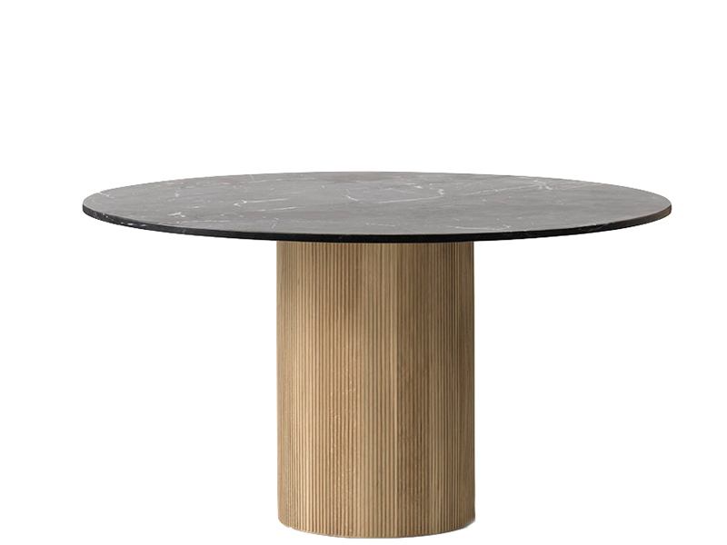 ライトオーク・ダークオークの脚に美しくユニークなマーブルの天板を組み合わせた モダンなラウンドのダイニングテーブル – キャビンラウンドテーブル