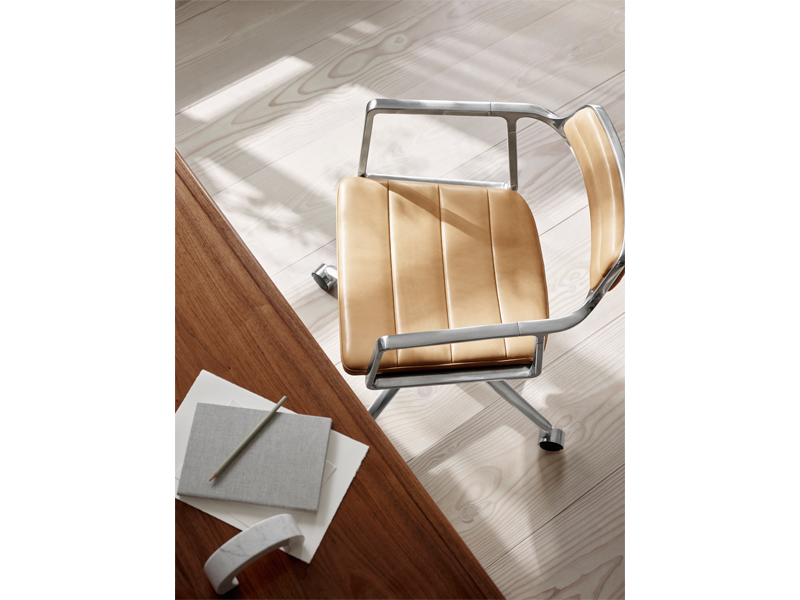 アルミニウムのフレームにレザーを組み合わせたモダンな風合いは、しっかりとしたコンポーネントにも関わらず、すっきりとしたデザインが魅力です。
