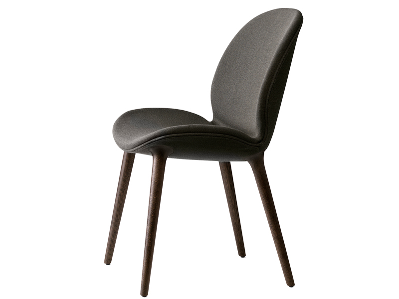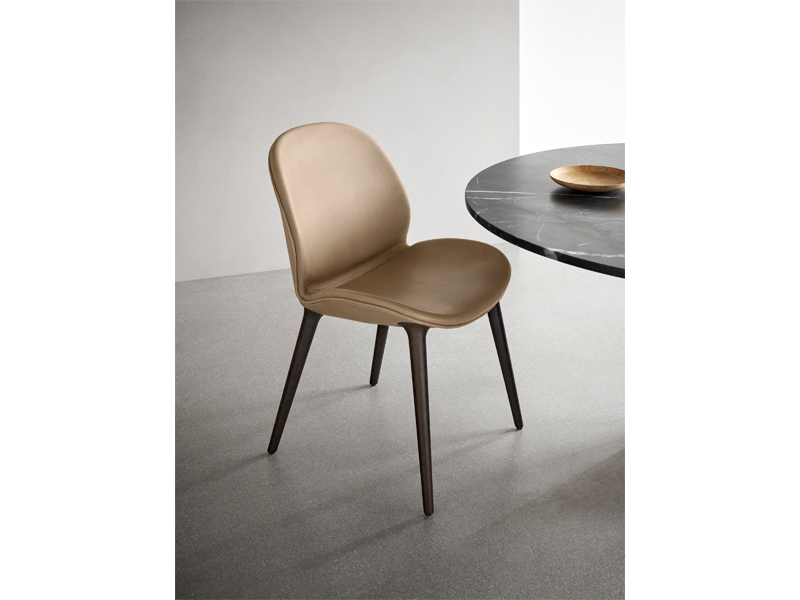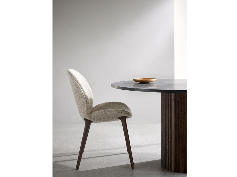 貝殻からインスパイアされたシェルのようなデザインとオーク材の脚の組み合わせは優しい風合いを作り出します。