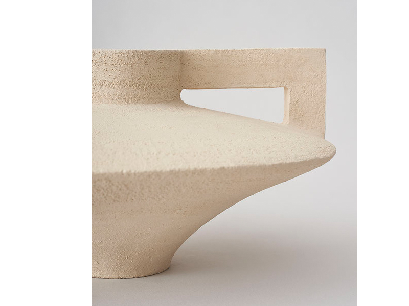 ざらざらとしたコンクリートのような手触りになっています。また、粘土に混合することで耐火度を上げ歪みを防ぐことができるシャモットを配合することで、ユニークなテクスチャーに仕上がります。