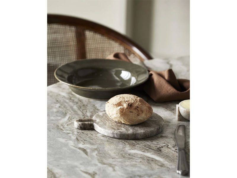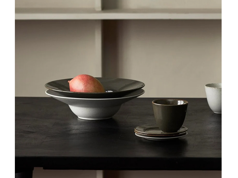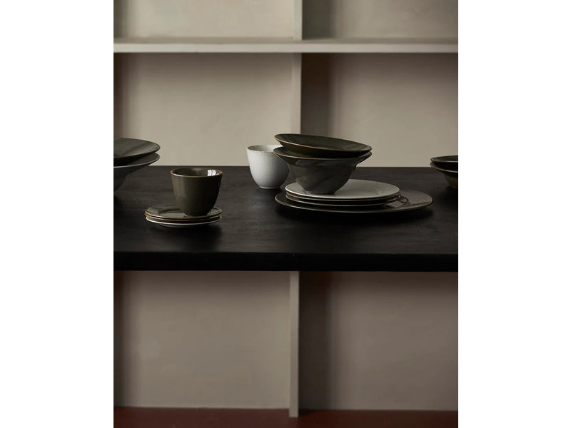表面に釉薬が施され艶感が上品なプレートは、スモーキーなグリーンカラーがテーブルコーディネートをシックにまとめ上げます