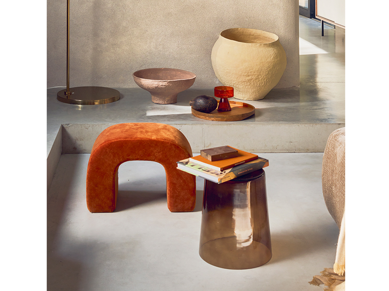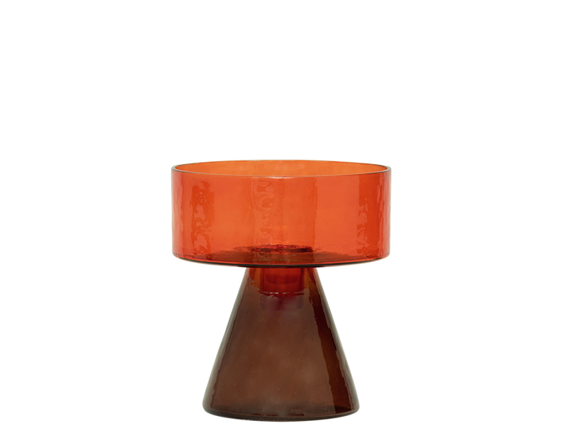 ブラウンレッドのグラデーションとリサイクルガラスのユニークな風合いが素晴らしい作品