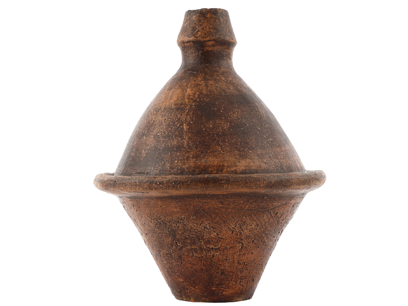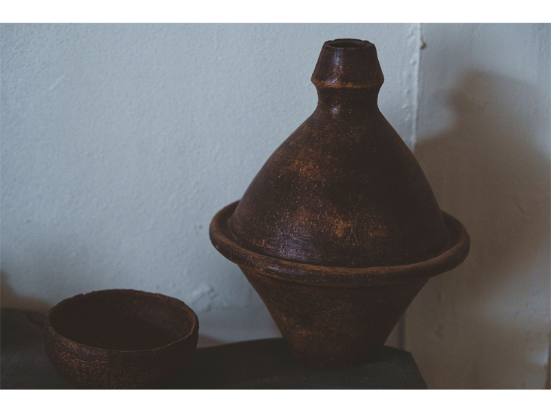 一般的な焼きものは、高温(約1200℃以上)で焼くことによって、粘土の中の成分や表面に塗る釉薬(ゆうやく)が化学反応を起こし、土をガラス化させる。そうすることで土が収縮し、強度のある器に仕上がる。一方で、低温(約1000℃以下)で焼いてガラス化しない状態に仕上げた器は「土器」と呼ばれる。つまり土器は本来、壊れやすくて水分を溜めることができない、現代の日常使いには向かない製品なのだ。