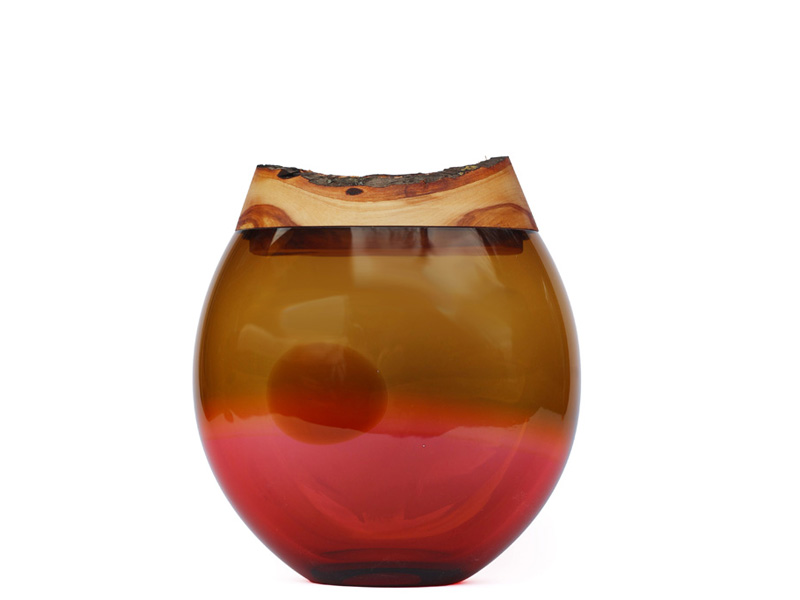 フリーハンドで形作られ、一つとして同じものがないこのコレクションは、ガラスにフォーカスしています。吹きガラスにて自由に形作られ美しいグラデーションが施されたガラスの表面に触れるのは、吹きガラス職人が手に持つ道具だけです。その結果、ガラスの開口部の柔らかなエッジが特徴的な、唯一無二の作品が生まれます。