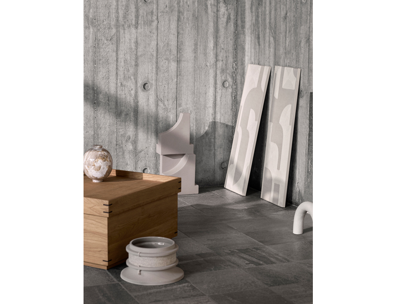 ストーンウェアの柔らかな表面と作品のディテールが織りなす陰影とが、マテリアルの冷ややかで硬い性質と滑らかなデザインとのバランスとの相互作用をもたらしています。