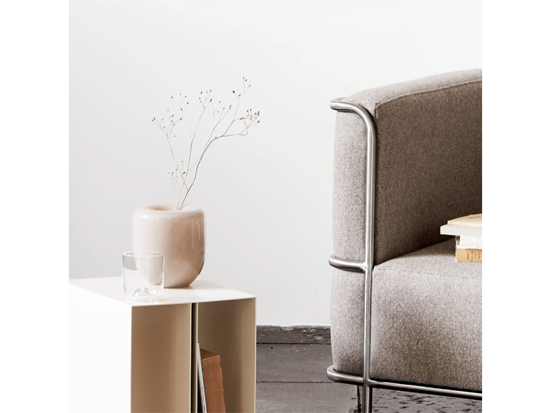 独特の二重構造が、吹きガラスの透明感を際立たせています。内側にはエレガントなベージュのペイントが施されています。