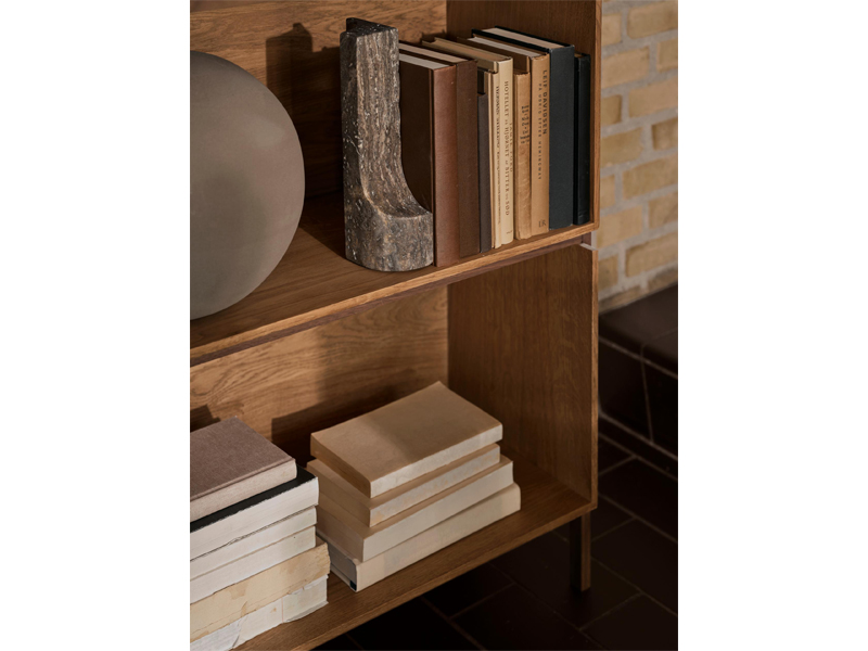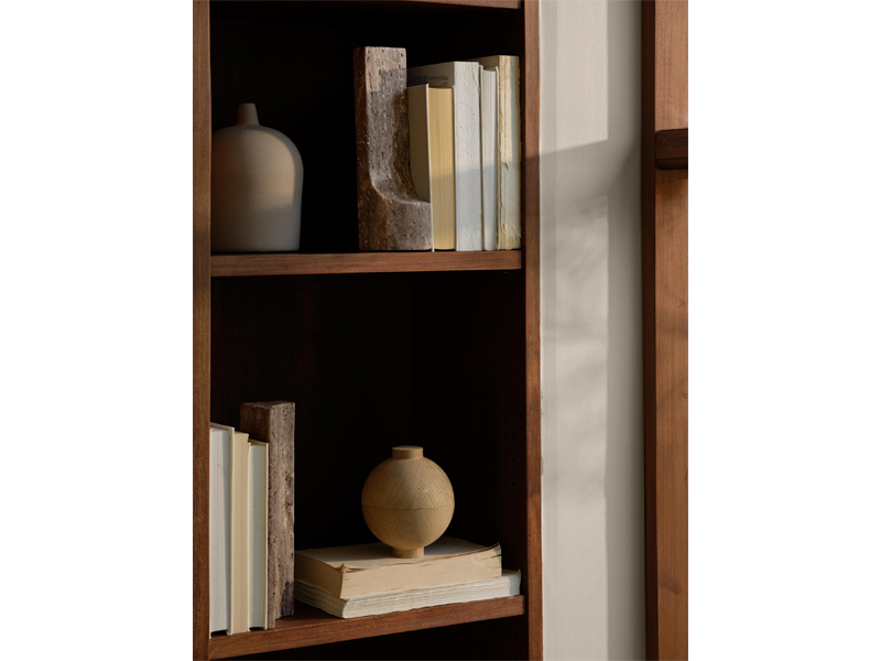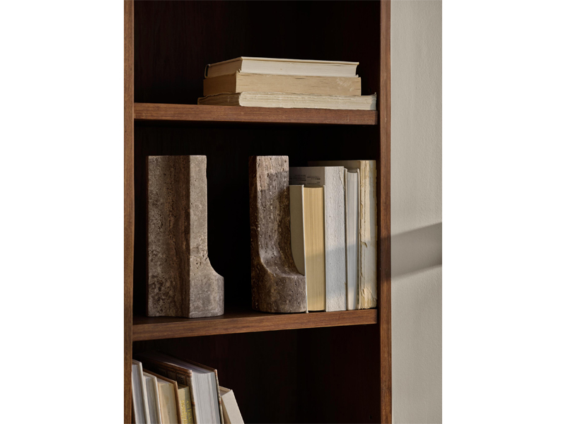 アーキタイプスカルプチャーは、機能性と彫刻的な芸術性を兼ね備えています。磨き上げられたトラバーチンから彫り出されたこのスカルプチャーは、曲線的なデザインが特徴で、ブックエンドとして美しく空間を彩ります。また独立したアートオブジェとして、様々な角度で飾ることで視覚的な表情を変えることができます。