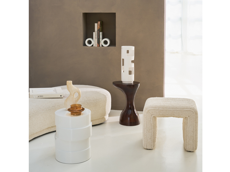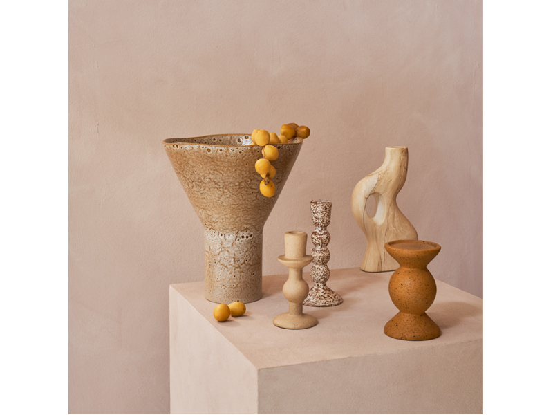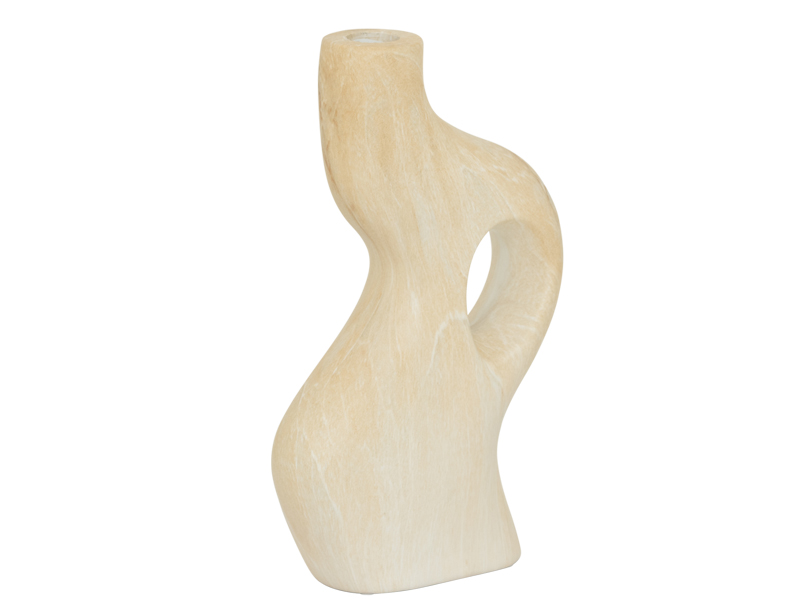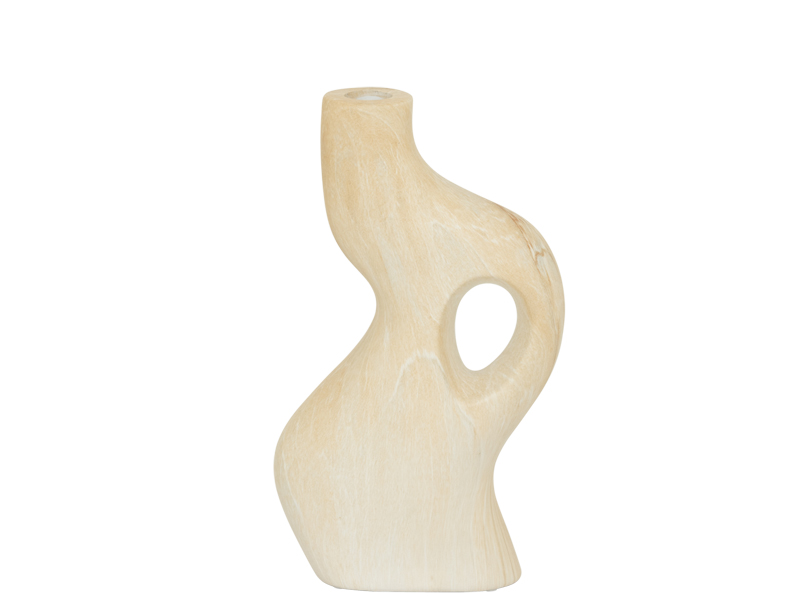 特殊な浸漬処理を施すことで、石のような質感がセラミックの表面に定着し、本物のトラバーチンのような風合いが生まれます。柔らかく自然なベージュの魅力的な仕上げは、このキャンドルホルダーの温かく流れるような有機的なラインと完璧に調和しています。