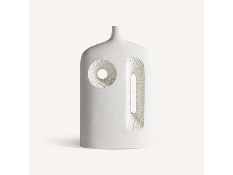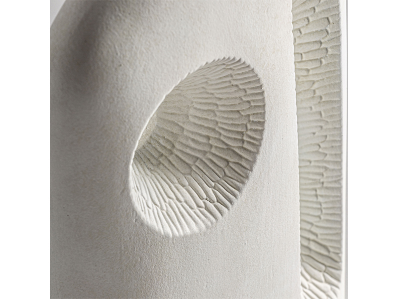 スリムなフォルムとマットホワイト仕上げのベースは、視覚的な軽やかさと時代を超越したエレガンスさをもたらします。空間をさりげなく変化させる作品です。
