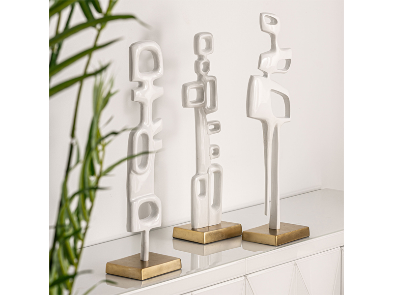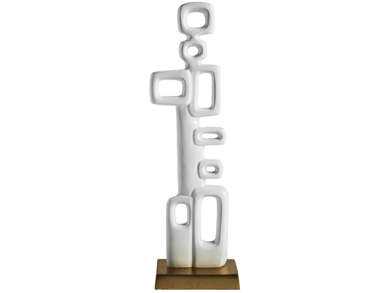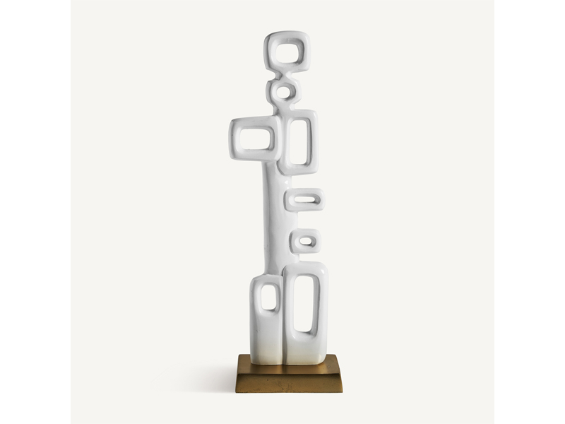 ホワイトとゴールドで仕上げたオブジェは、彫刻的な輝きを添えます。