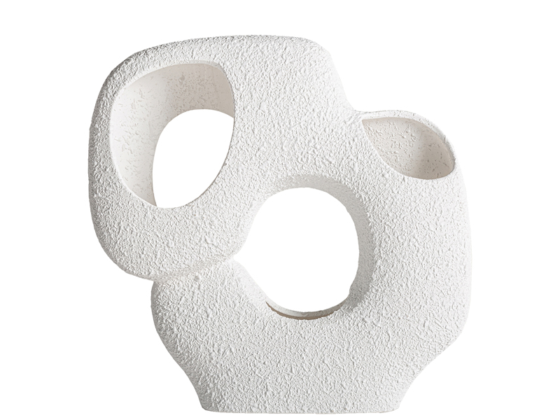 白い陶器にラフな仕上げを施したオブジェは、その有機的なフォルムと落ち着いた存在感が際立っています。