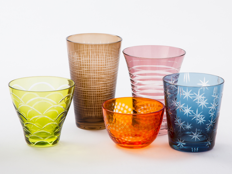 カッティングによる模様と色がキラリと光るシリーズです。カッティングは手彫りです。
