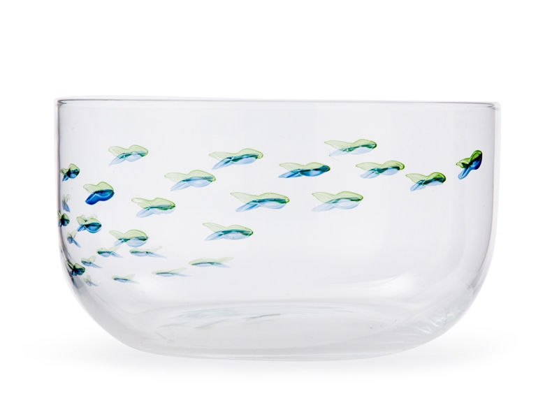 吹きガラスに手描きしたスイミーが愛らしいシリーズ。爽やかに夏のテーブルを彩ります。