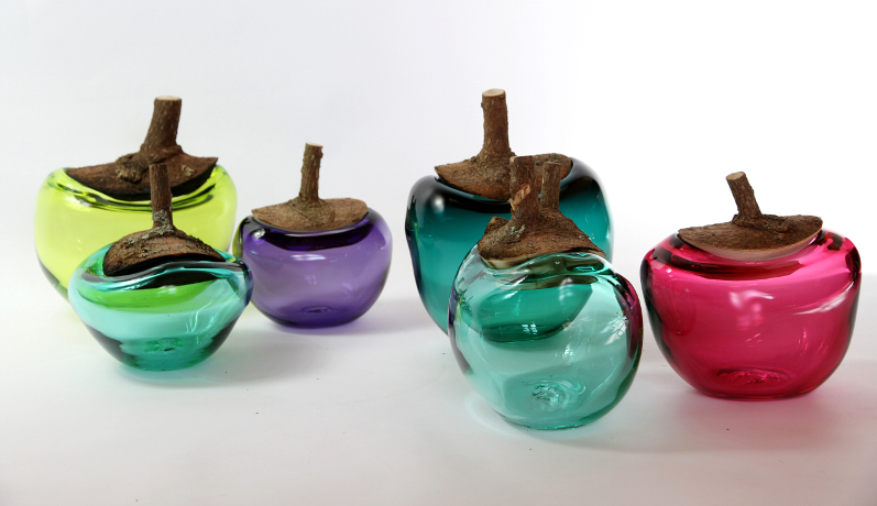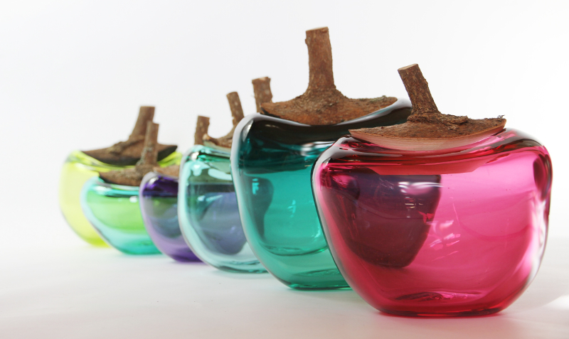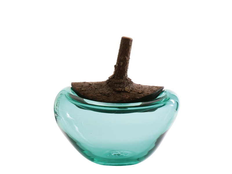 木のリッド部分は自然の枝を利用してデザインされており、果物を連想させるような丸みのあるフォームのガラスととても相性が良いです。